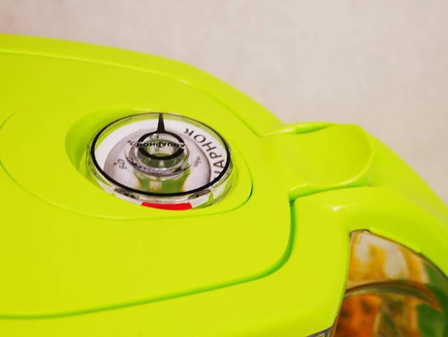 Mimo niewielkich rozmiarów pomieści nawet 2,8 litra wody. Filtruje wodę bardzo szybko, więc już o kilku minutach mamy gotową, przefiltrowaną wodę. Posiada specjalne, antypoślizgowe nóżki, dzięki czemu jest stabilny i niełatwo go przewrócić. Ma bardzo poręczny uchwyt, dzięki czemu nie muszę się obwiać, że wysunie mi się z ręki. Oprócz tego posiada klapkę z mechanizmem, na którym znajduje się licznik. To właśnie on wskazuje kiedy należy wymienić filtr. Przy każdym otwarciu klapki w celu nalania wody, wskazówka się przesuwa. Mimo dużej pojemności dzbanek jest lekki i wygodny w obsłudze, a poza tym zajmuje niewiele miejsca.
